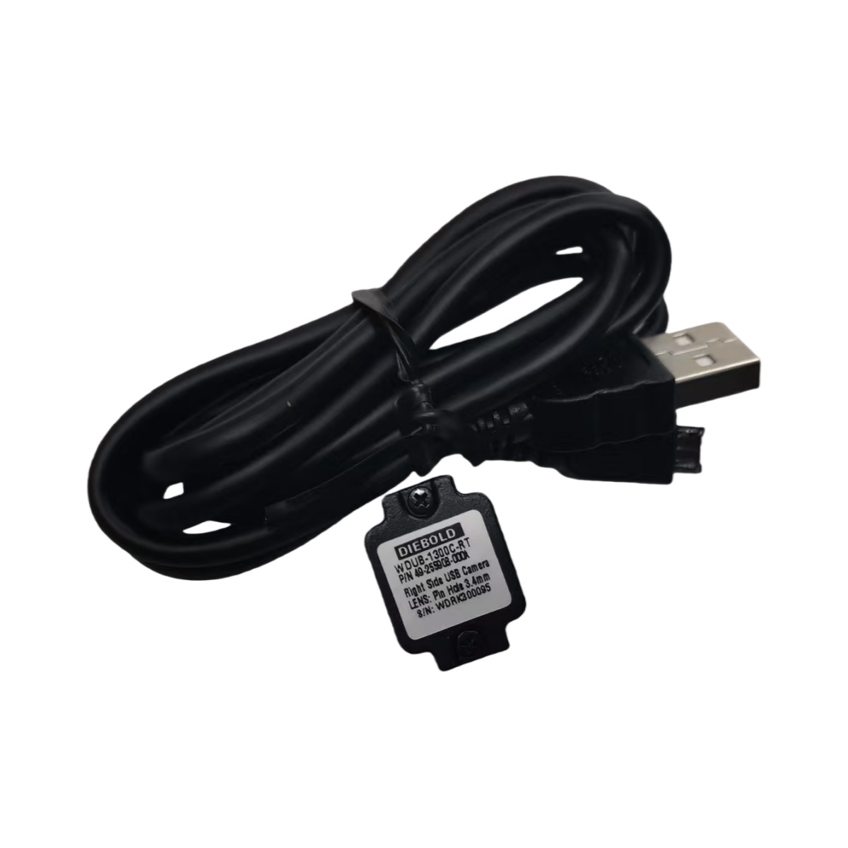 Camera Micro Diebold WDUB-13DDC-RT – Mới Nguyên Bản, Loại Đầu Nối USB Bên Phải. Camera ATM chuyên dụng này là một linh kiện chính hãng Diebold, được xác định bằng mã bộ phận 49255908000A và số sê-ri WDRI300095, đảm bảo tính nguyên bản và đảm bảo chất lượng.